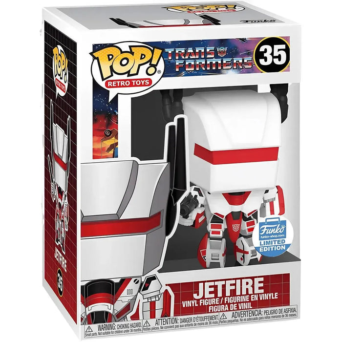 Unleash the power of the skies with the Limited Edition Jetfire Funko POP!, a tribute to one of the most dynamic Autobots in the Transformers universe. Styled with a retro twist and crafted with striking detail, Jetfire brings a heroic presence to your display shelf. His bold red and white armor and signature visor capture the essence of classic Transformers design, making this figure a nostalgic standout for longtime fans and collectors alike.