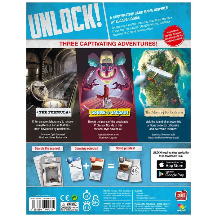 With an included ten-card tutorial, players can quickly learn the game mechanics and jump right into the action. Designed for 2 to 6 players, Unlock! Escape Adventures delivers immersive storytelling and challenging puzzles, making it perfect for game nights and mystery lovers alike. Can you solve the mysteries and escape before time runs out?