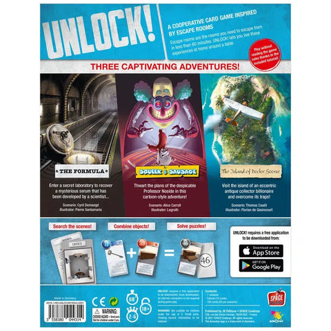 Experience the excitement of an escape room from the comfort of your home with Unlock! Escape Adventures, is a cooperative card game that challenges players to solve intricate puzzles and unravel thrilling mysteries. Using only a deck of cards and a companion app, you’ll search for clues, combine objects, and crack codes to escape before time runs out.