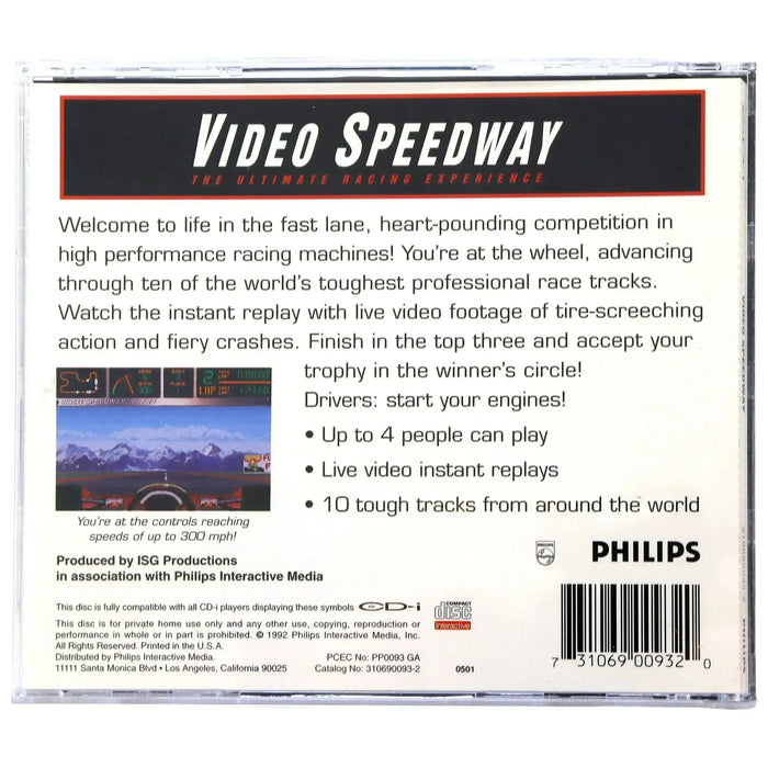 Buckle up and take the wheel in Video Speedway: The Ultimate Racing Experience. This exciting racing game for Philips CD-i puts you in control of high-performance machines, letting you race across ten of the world’s most challenging professional tracks. Whether you're racing against friends or striving for solo glory, the competition is intense and the rewards are thrilling.