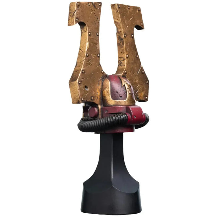 Each mark upon their armour is a testament to centuries of warfare, each skull claimed for the skull throne fuelling their ferocity further. With unmatched attention to detail, our artists bring the ferocity of the Khorne Berzerker to your collection. This replica captures the savage beauty of the helmet, from the deep crimson hues to the towering brass-trimmed crests.