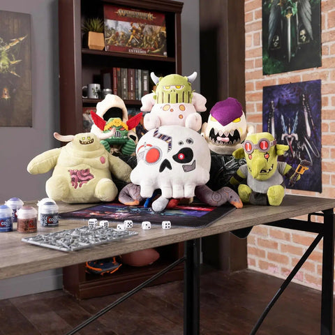Warhammer 40,000 Plush: Features a soft and squishable Spanna Grot plush with a toothy grin, goggles, and his favorite tool, ready to assist with your Warhammer tasks.