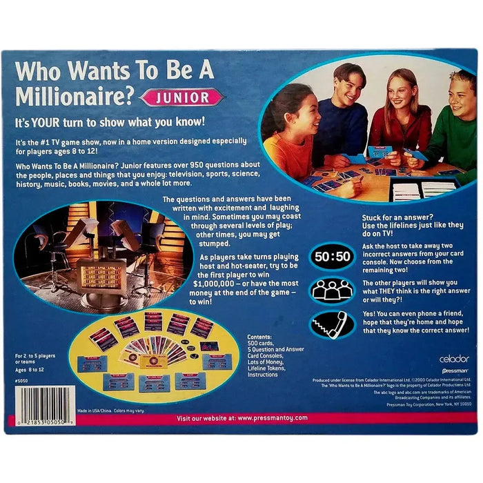 Gather your family and friends and step into the spotlight with Who Wants To Be A Millionaire: Junior! This exciting board game brings all the drama, thrills, and brainpower of the popular game show into your living room—tailored especially for curious young minds. The stage is yours—how far will your knowledge take you?