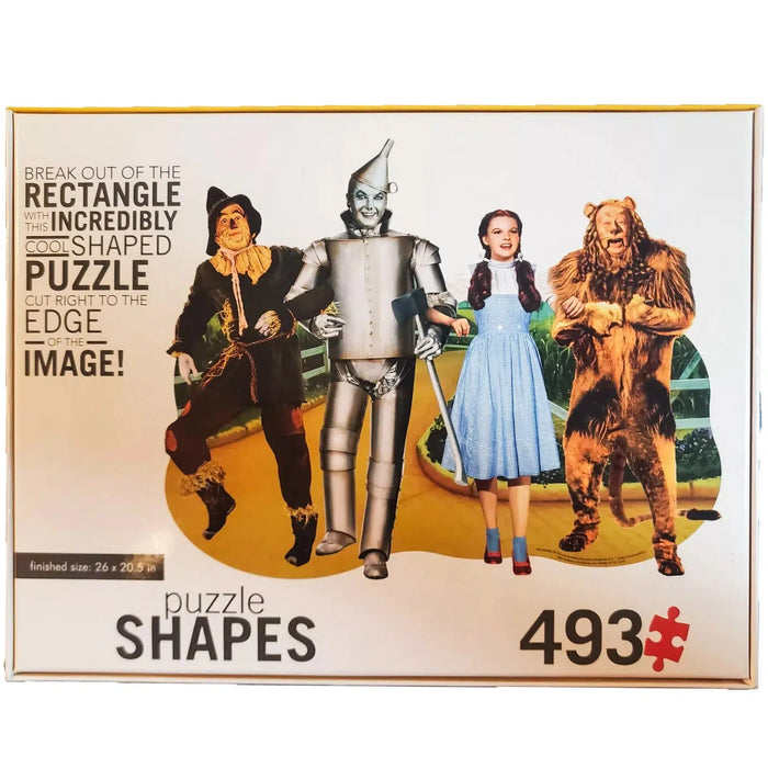 Embark on a whimsical adventure with the "Wizard of Oz - Yellow Brick Road Puzzle," featuring a delightful silhouette shape of Dorothy and her cherished companions: the Scarecrow, the Tin Man, and the Cowardly Lion. This enchanting 493-piece jigsaw puzzle captures the essence of friendship and the journey to Oz, making it a perfect challenge for fans of all ages.